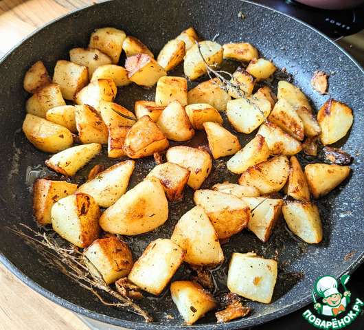 Жарим картошку до румяной корочки. И не волнуемся если она получилась не совсем равномерной, это всё равно будет чертовски вкусно и ароматно!
