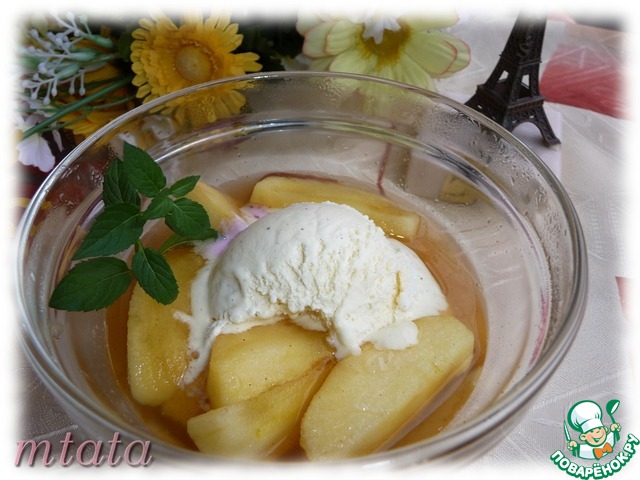 В современной кулинарии миротон - это французское блюдо, чем-то напоминающее плов. Однако раньше, в частности в 18-19 веке, миротоном также называли и сладкое кушанье. Этот десерт покорил меня своим насыщенным фруктовым вкусом и восхитительным ароматом яблок и корицы, а алкоголь привносит свою неповторимую нотку. Безумно вкусно подавать с мороженым, ведь оно так великолепно оттеняет сладость десерта!