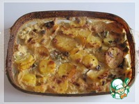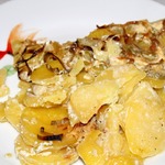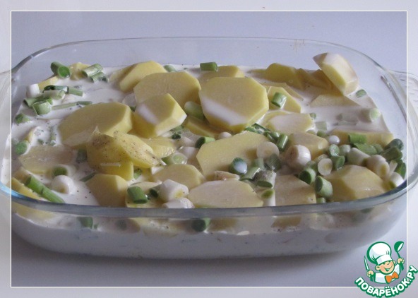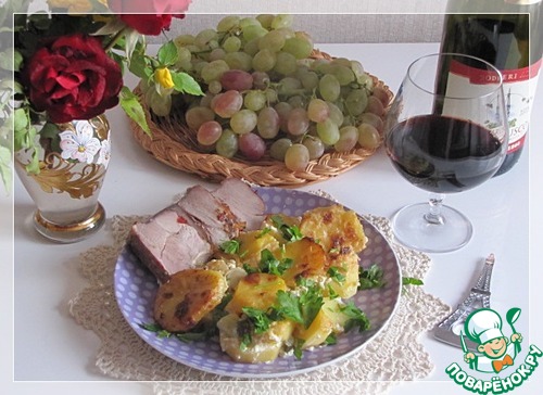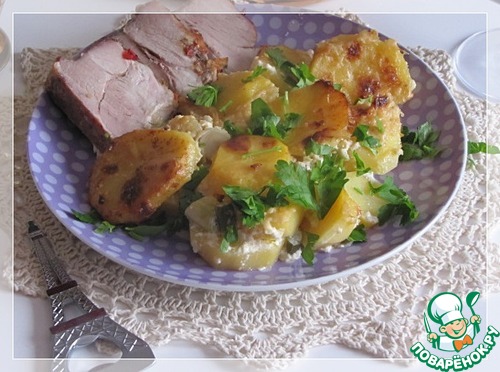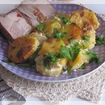 Описание: Картофель, запеченный с луком-преем в сливках, - прекрасный гарнир. Это блюдо - одно из самых давних и любимых в моей семье.