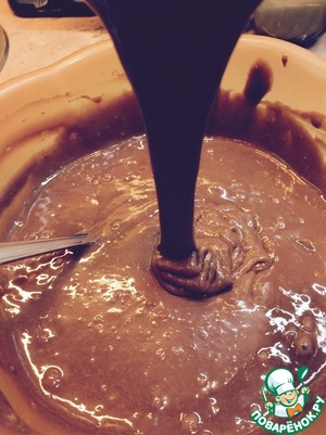 Растопленное сливочное масло смешиваем с какао, сахаром, молоко