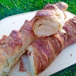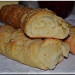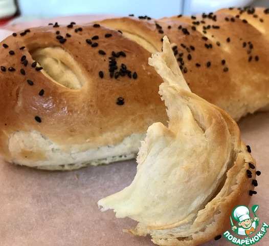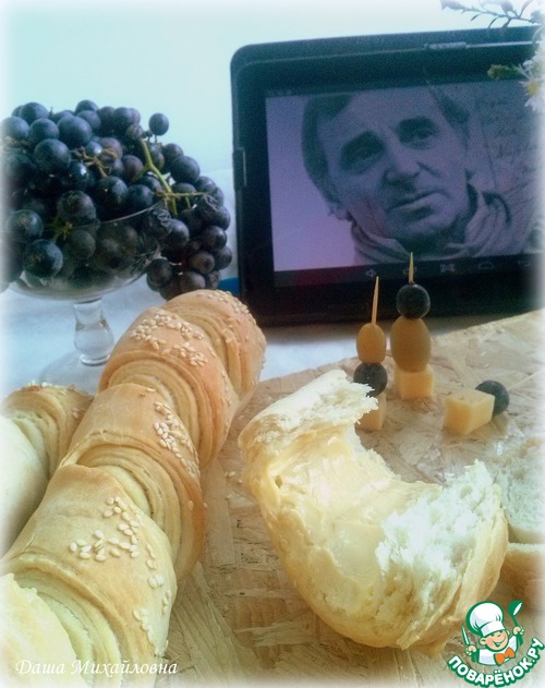 Опять раскатываем в прямоугольник, смазываем смальцем и сворачиваем в рулет. Выкладываем багеты на противень на пергамент или силиконовый коврик. Делаем косые надрезы. Смазываем молоком или взбитым яйцом, посыпаем кунжутом. Оставляем багеты на 30 минут для увеличения объема в 2 раза. Нагреваем духовку до 180С и ставим багеты на 30 минут. Похлопаем по корочке и услышим глухой звук. Достаем из духовки и...