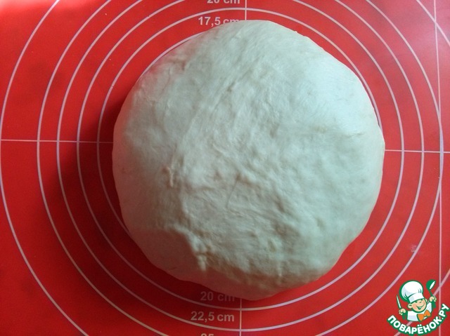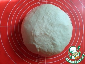 Вымешивать тесто в течение 10 минут до получения гладкого колобка. Накрываем тесто и ставим в теплое место до увеличения в объеме в 2-3 раза на 1 час.