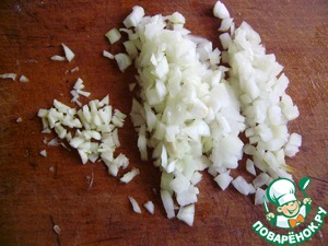 • Лук и чеснок мелко измельчаем.