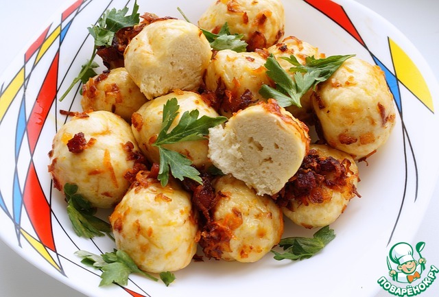 Ставим кипятиться воду. Стол и руки присыпаем мукой. Из теста катаем шарики размером чуть меньше грецкого ореха.