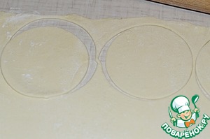 1. Слоеное тесто раскатать в пласт. Вырезать круги, у меня диаметр 10 см.