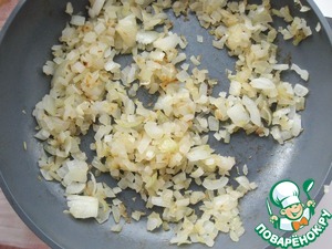 Лук обжарить в 3 ст. л. оливкового масла на среднем огне до золотистого цвета.