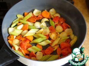 • Овощи порезать крупно, обжарить на масле до корочки;