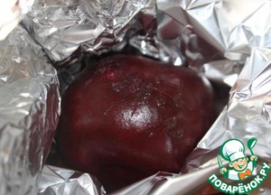 Свеклу завернуть в фольгу и запечь в духовке до готовности