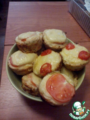 Получились нежные кексики, вкусные сами по себе, но сыр с помидоркой удачно их дополнил. Спасибо!!