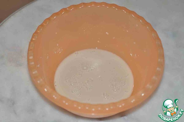Развести сухие дрожжи в небольшом количестве теплой (не горячей) воды. В этот раз дрожжи были Сафф-момент, можно любые другие
