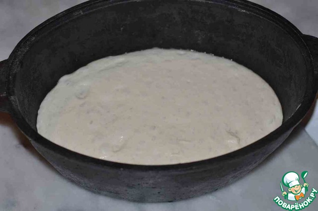 Перекладываем тесто в форму для выпекания, смазанную небольшим количеством растительного масла. Оставляем еще на 30 минут.