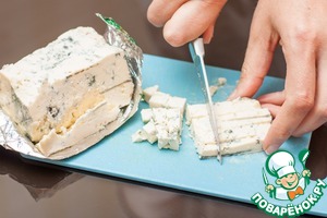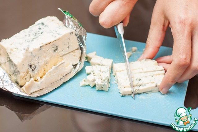 Сыр с плесенью нарезать мелкими кубиками или разломать на кусочки