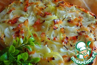 Приготовить заливку - яйцо взболтать со сливками, листочками тимьяна и щепоткой белого перца и мускатного ореха