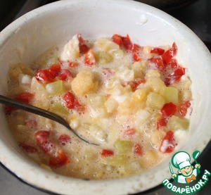 Обжаренные овощи переложить в миску и соединить с яйцом, хорошенько перемешать.