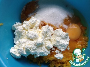 Добавить яйцо, соль, творог, сахар и ванилин.