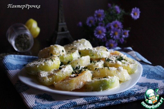 Courgettes Etuvees a la Creme. По этому рецепту кабачок получается очень нежный, со сливочным вкусом. А зелень придает блюду нотку свежести и подчеркивает мягкий, бархатный вкус овощей.