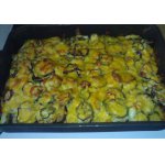 Смесь овощей и риса выложить в форму, сверху разложить мясные "пальчики" и поставить в нагретую духовку. Готовить при 200 градусах около 25-30 минут (ориентируйтесь по своей духовке). Овощи не должны размякнуть. Старайтесь сохранить их слегка аль-денте.