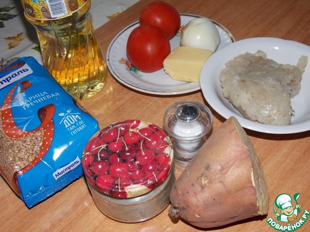 Ингредиенты для «Запеканка из батата с гречкой»: