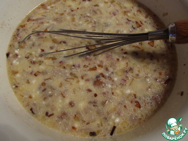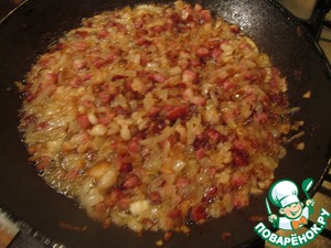 • Соединить с обжаренным луком и беконом. Все хорошо перемешать.