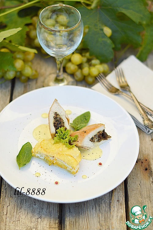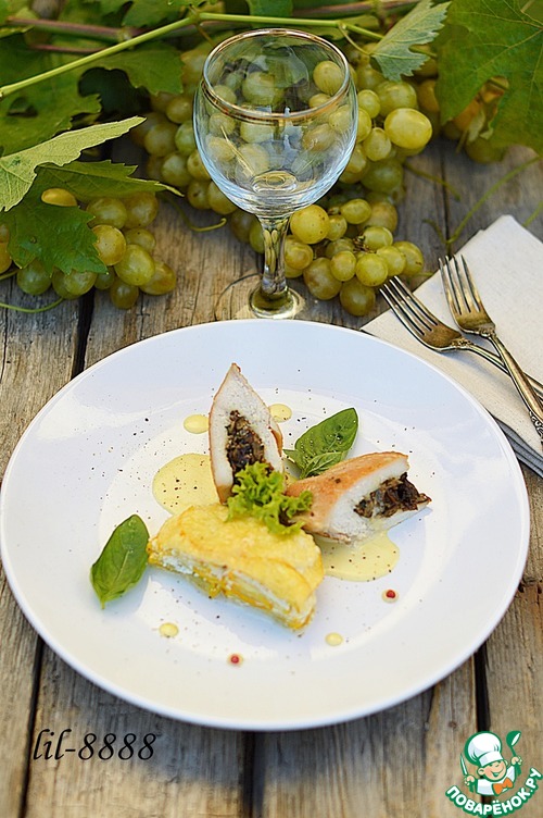 Рецепт «Куриное филе с грибами и кабачковой запеканкой»:
