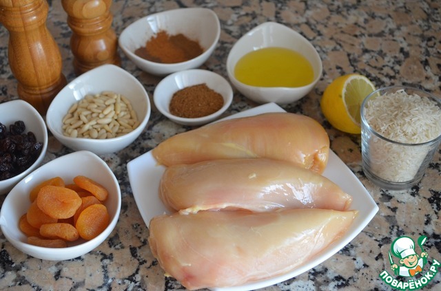 Ингредиенты для «Куриная грудка с рисом и сухофруктами»: