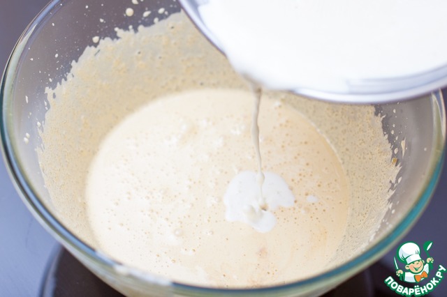 Отделить белки от желтков и взбить добела желтки с половиной стакана коричневого сахара миксером или венчиком