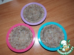 Разложить фарш в формочки, сделать бортики. Если форма не силиконовая смазать маслом.