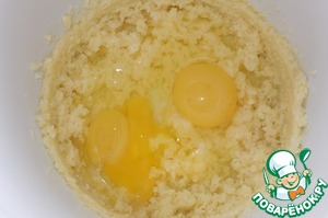 Сливочное масло взбиваем сахаром, добавляем яйца. продолжаем взбивать.