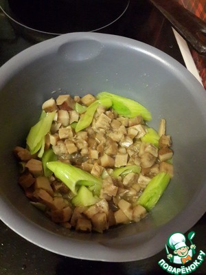 Грибы с луком-пореем обжарить в сотейнике на масле