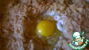 Делаем в рисе углубление. разбиваем в него яйцо и когда белок начнёт немного схватываться, интенсивно перемешиваем. Снимаем с огня.