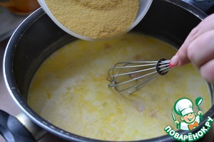 Снять с огня. Постоянно мешая. всыпать кукурузную муку.