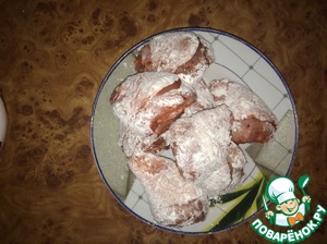 Приготавливаем отдельную посуду с мукой, и каждый кусок обваляем с обеих сторон.