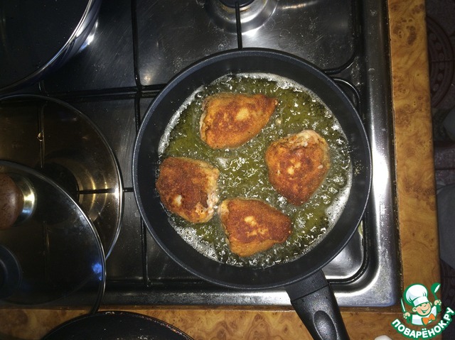 Жарим на сковородке на большом кол-ве горячего масла до золотой корочки с обеих сторон. Готово! приятного аппетита!