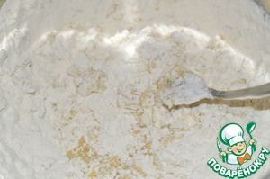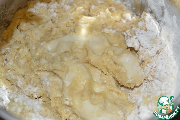 3. Затем смешать все сухие и добавить тесто первого замеса. Вместо цукатов я добавила цедру одного апельсина.