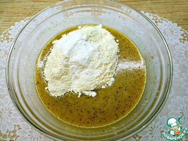 Добавить просеянную муку, манку и разрыхлитель. Немного взбить. |