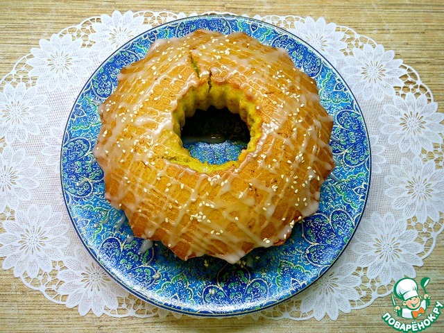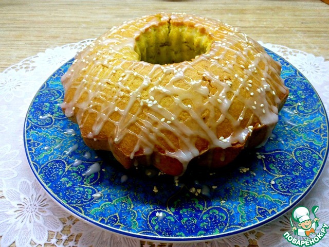 Готовый кекс покрыть глазурью и присыпать кунжутом или орешками. |