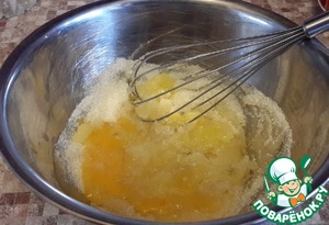 Яйца взбить венчиком с сахаром, добавить ванильный сахар