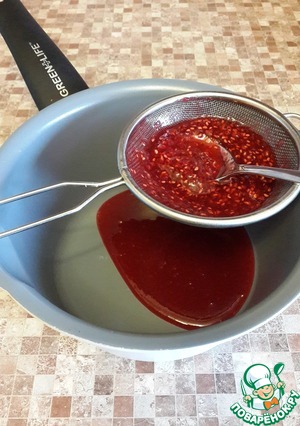 Пока пекутся гато, приготовим малиновый соус. Свежую или замороженную малину измельчить блендером и протереть через сито