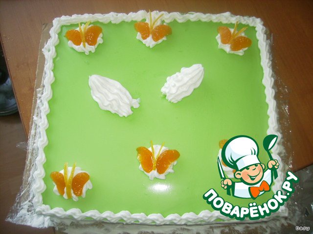 из мандариновых Долек и Цедры Лимона сделать Бабочек и украсить ими Торт.