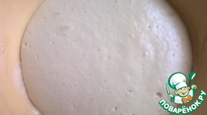 Сделать опару. Для этого в теплом молоке растворить дрожжи, соль, сахар. И всыпать половину нормы просеянной муки. потихоньку, тщательно перемешивая.
