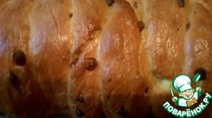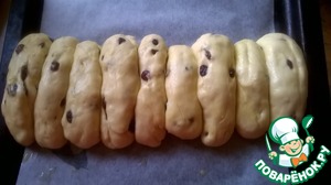Когда тесто опять поднимется вдвое ( ушло около часа), вмешать в него изюм.