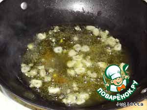 Разогреть растительное и сливочное масло, обжарить в них тонко порезанный чеснок в течение 2-х минут.