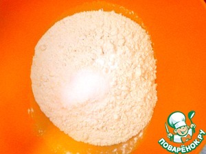 К муке добавить чайную ложку соды и полторы чайных ложки лимонной кислоты, которые можно заменить пакетиком разрыхлителя. Я предпочитаю покупать отдельно соду и лимонную кислоту, поскольку это дешевле, чем разрыхлитель в пакетиках.