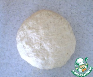 В итоге получается вот такой упругий и очень мягкий колобок. Смажьте руки сливочным маслом и натрите им получившийся шар из теста. Отставьте тесто в сторону и приготовьте начинку.
