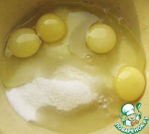 На следующее утро ( через 8 часов) взбить яйца с сахаром и щепоткой соли