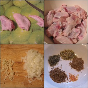 Крылышки вымыть, обсушить, разрезать по фалангам, кончики выбросить.