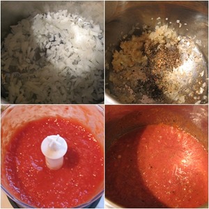 Добавить кумин, кориандр, пименто, орегано, тимьян и острый перец. Немного прожарить, затем влить измельчённые томаты и варить, помешивая, 15-20 минут. -