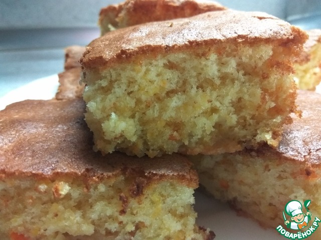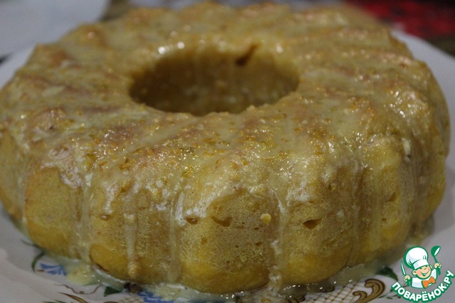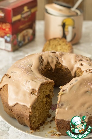 Очень ароматный и сочный бисквит, покрытый сладкой глазурью. Готовится с добавлением цельнозерновой муки и коричневого сахара, животный жир заменен на растительное масло, т. е. пирог, можно сказать, очень даже полезный!