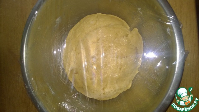 Введите постепенно 500 г. муки. Замесите тесто. Накройте его плотно пищевой пленкой и дайте подойти один раз. Затем разделите тесто на 3 части для формирования рулета. У меня было яблочное повидло. Я делала маленькие рулетики получилось 18 шт.