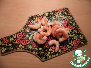 • Креветки отварить в кипящей воде, согласно упаковке, очистить.